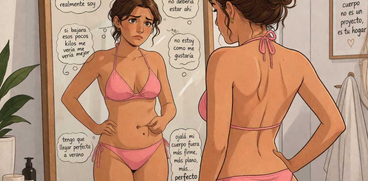 Y si no te apetece hacer nada ahora mismo, también está bien. No tienes que convertirte en una versión idealizada en dos meses. No necesitas ser otra persona este verano. Puedes comprarte un pareo, elegir un bañador que te guste y disfrutar sin estar en guerra con tu cuerpo.